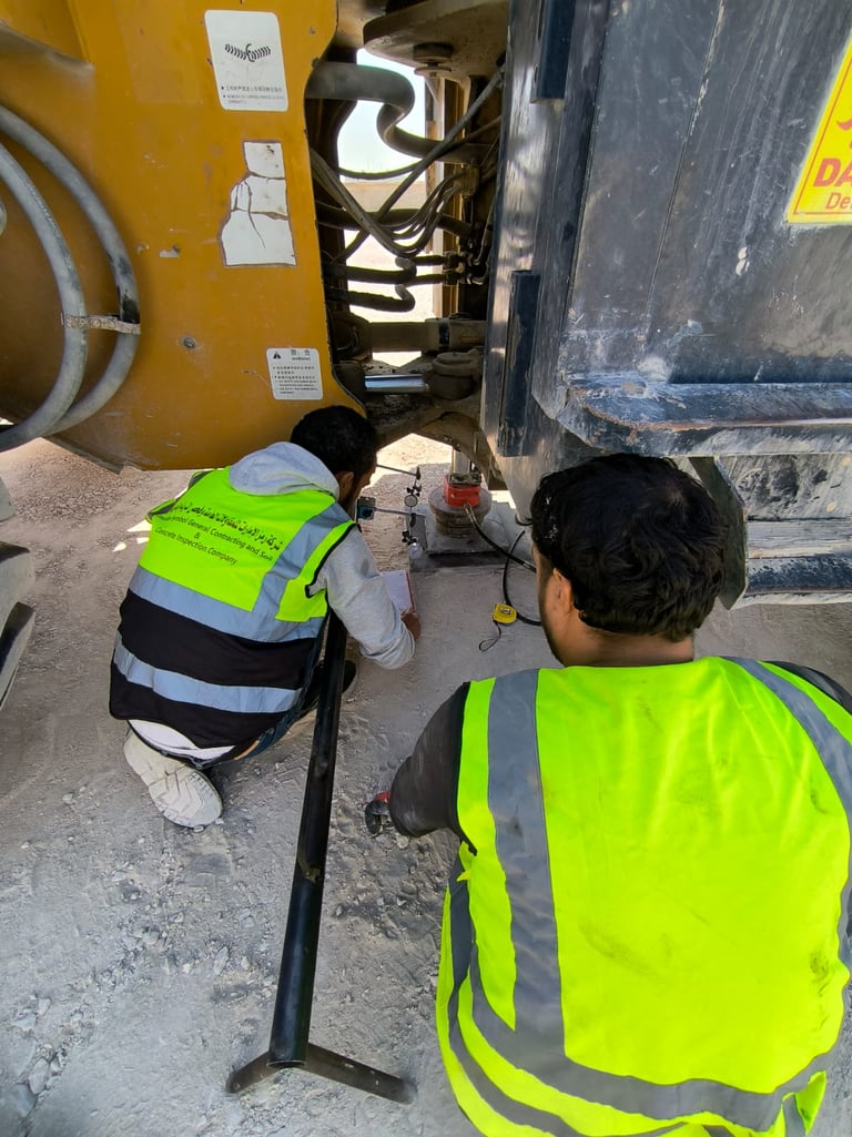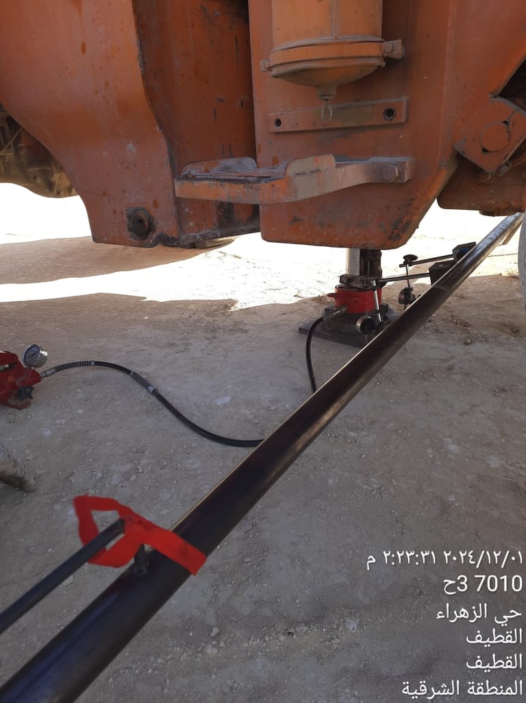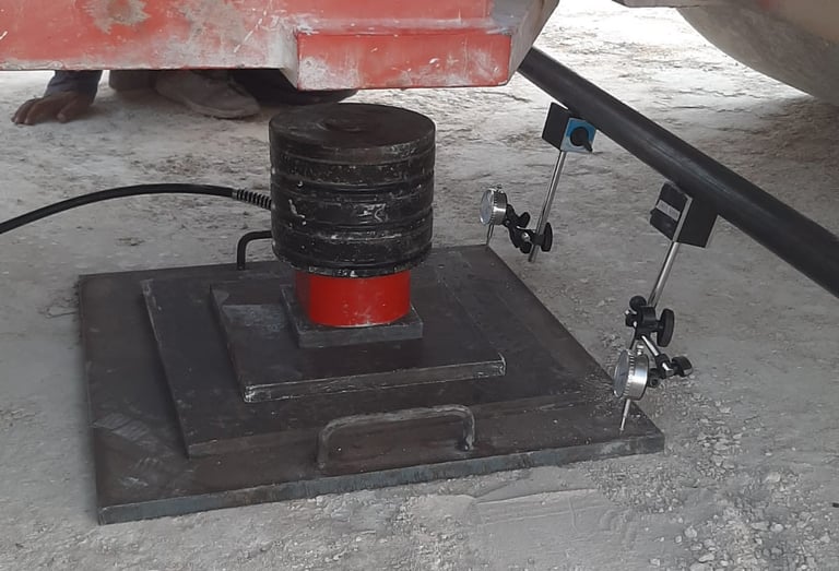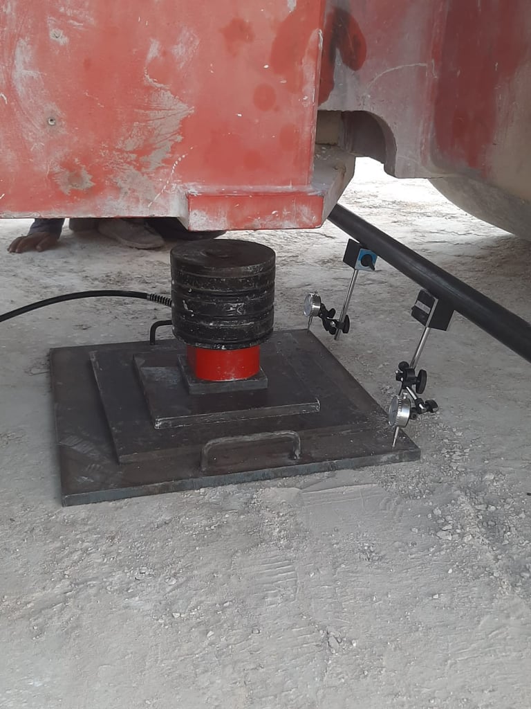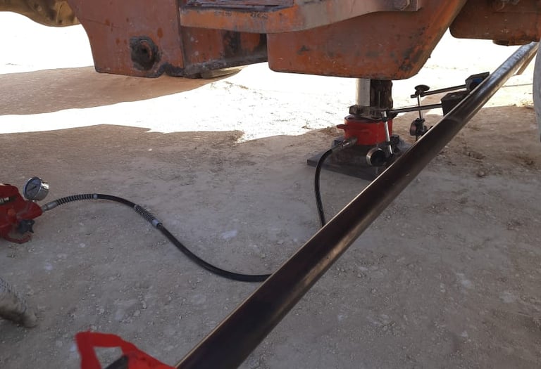 3- Iron pieces placed on top of the press, which in turn is placed on the cylinder, under any heavy equipment, ensuring the equipment weighs no less than 20 tons.
